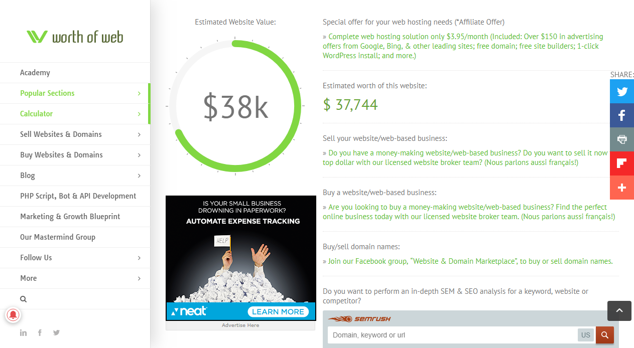 Code: wt113 (Free Web Tools) / Website Value Calculator